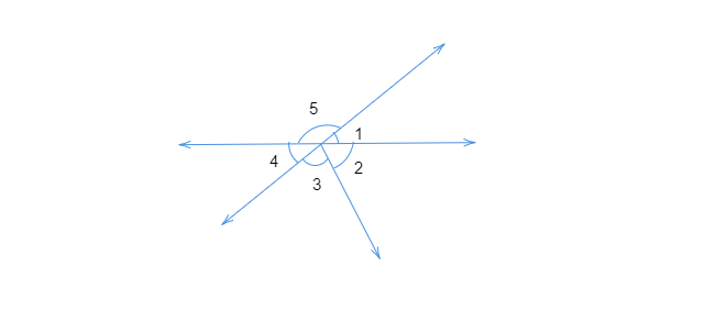 (i) 對頂角是 $\angle 1$ 和 $\angle 4$;$\angle 5$ 和 $(\angle 2+\angle 3)$