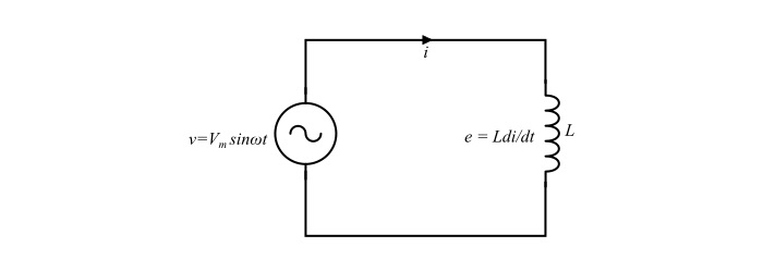 考慮包含一個純電感線圈(電感為 L 亨利)的電路。當一個交流電壓 V(RMS)施加線上圈兩端時,一個交流電流 I(RMS)將流過電路。由於這個交流電流,線上圈中會由於其電感而產生一個反電動勢 (e)。這個反電動勢在每個時刻都阻礙電流透過線圈的變化。