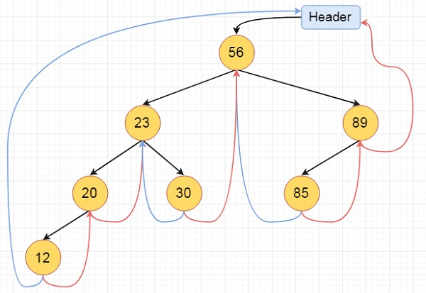 Threaded Binary Tree 12 20 23 30 56 85 89