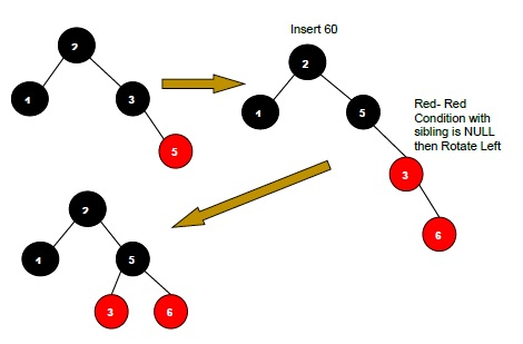 //The color of the inserted new node is Red color[key] <- Red while(key≠root and color (p[key]=Red)) do if p[key]= left(p[p[key]]) Then y←right[p[p[key]] // If the parent of the new node is Red(if there is Grandparent instead root Node) Flip the color. if color[y]← Red then color(p[key])← Black color(p[p[key]])← Red key← p[p[key]] else if key← right[p[key]] then key← p[key] //When parent of new node has the red color and its sibling is NULL LeftRotate(root,key) color(p[key]) ← Black color(p[p[key]]) ← Red RotateRight(root,p[p[key]]) else exchange then left and right elements to make it balance. color(root)← Black