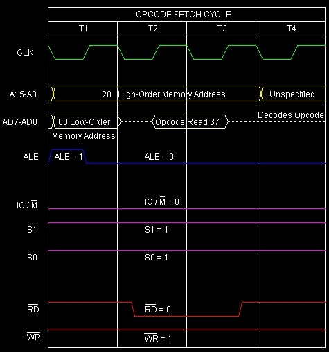 **總結** - 因此,此指令 STC 需要 1 位元組、1 個機器週期(操作碼獲取)和 4 個 T 狀態才能執行,如時序圖所示。