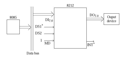Intel 8212 作為中斷輸出埠:當任何輸出裝置想要執行驅動中斷資料傳輸時,會在 STB 引腳上傳送一個正脈衝。