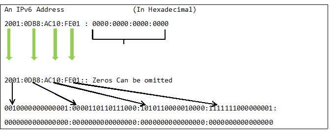 下圖顯示瞭如何以二進位制形式表示 IPv6 地址: