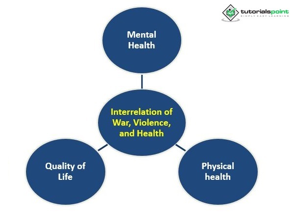 戰爭、暴力與健康之間存在著多種相互關係。戰爭和暴力直接和間接地影響個人和群體的精神和身體健康。暴力和戰爭產生了直接影響,如死亡、身體傷害和人員遷移。衝突常常摧毀醫療保健設施,並使人們難以獲得必要的醫療服務。這導致疾病傳播,並惡化人們的健康狀況。暴力和戰爭的一些間接影響包括心理創傷、精神健康問題和壓力,例如抑鬱症和創傷後應激障礙(PTSD)。當人們失去社群、家園和社會支援系統時,他們的健康狀況就會惡化。