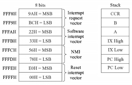 當中斷髮生時,M6800 會根據給定的順序執行一些任務。此順序如下