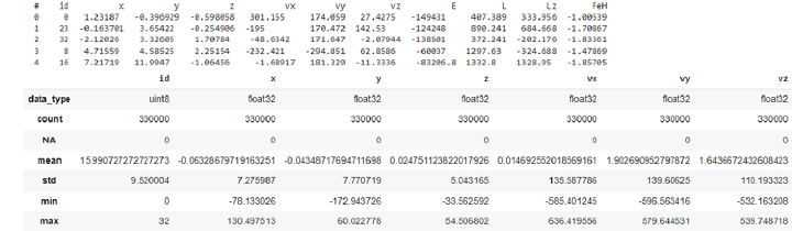 import vaex %time df_v=vaex.example() print(df_v.head(5)) df_v.describe()