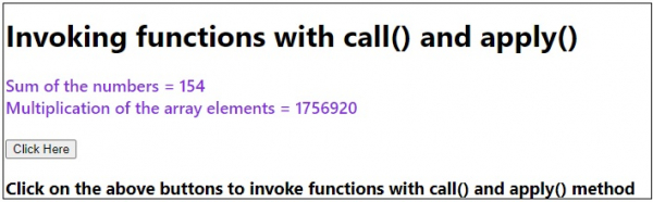 <h3>Click on the above buttons to invoke functions with call() and apply()