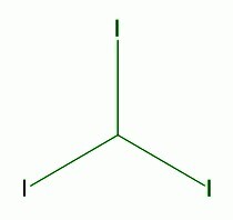 骨架式,有機化合物的公認表示法,是碘仿的二維分子結構圖的另一個名稱。碘仿的化學結構表明碳原子位於角上,並且沒有跡象表明氫原子與碳原子連線。您可以想象每個碳原子的周圍都有足夠的氫原子使其具有四個鍵。