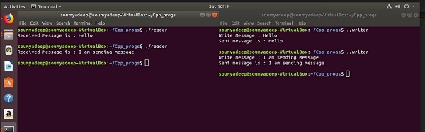 這裡我們將建立兩個程序。一個可以寫入,另一個可以讀取。讓我們看看讀取器和寫入器程序是如何使用共享記憶體工作的。