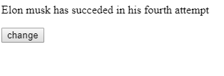 onclick='document.getElementById("change").innerHTML = "Elon musk has succeded in his fourth attempt"'>
