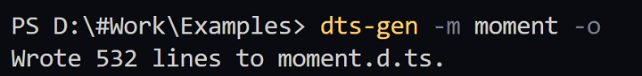 此命令在當前目錄中生成一個名為 `moment.d.ts` 的宣告檔案。