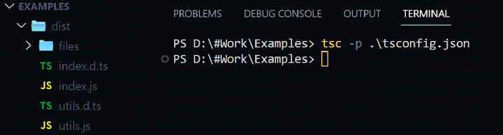 此命令編譯 JavaScript 程式碼並在指定的輸出目錄(此示例中為 dist)中生成相應的宣告檔案。