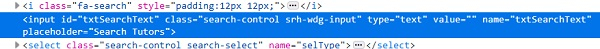 我們考慮一個具有 input tagname 的元素。它將用 xpath 定位符和 id 屬性(//input[@id='txtSearchText'])進行識別。
