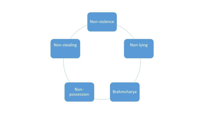 每一位耆那教徒都應該遵守這五條教誨。 महावीर 甚至告訴他的追隨者要放棄衣服,過一種嚴格的生活。