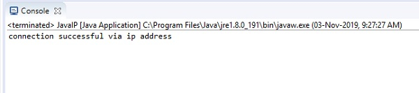 - 如果連線成功,則列印“透過IP地址連線成功”以確認。