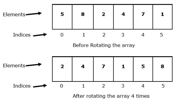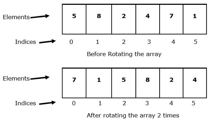 The given array is: 5 8 2 4 7 1 The given array after right rotation is: 2 4 7 1 5 8