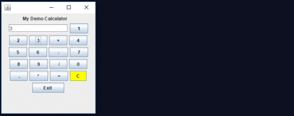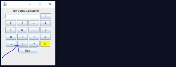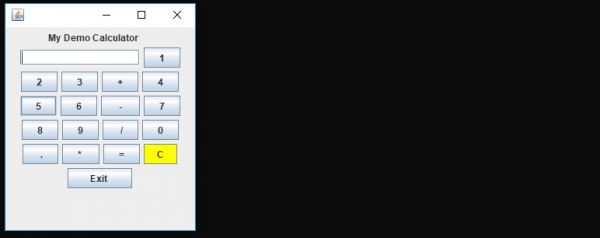 JButton one, two, three, four, five, six, seven, eight, nine, num0, add, sub, div, mult, equalto, exit, point, reset;