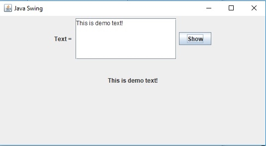 JLabel commentlabel= new JLabel("Text = ", JLabel.RIGHT);