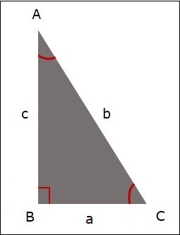要找出三角形角度,我們可以根據餘弦定理使用正弦/餘弦法則,如下所示 −