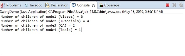 System.out.println("Number of children of node4 (Tools) = " + node4.getChildCount());