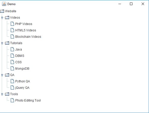 DefaultMutableTreeNode two = new DefaultMutableTreeNode("HTML5 Videos");
