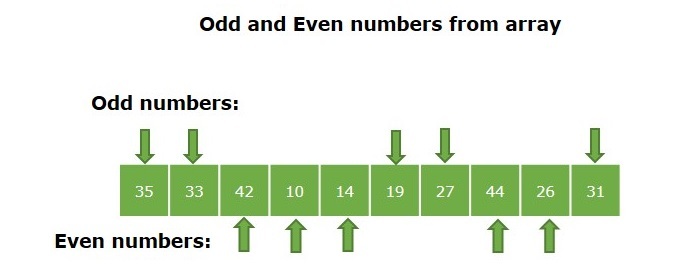 給定一個型別為Integer的陣列,編寫一個Java程式來查詢該陣列中的奇數和偶數。能被 2 整除的數稱為偶數,如果一個數除以 2 餘 1,則稱為奇數。