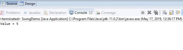 如要檢索單元格的值,請使用 getValueAt() 方法。作為引數,設定要獲得其單元格值的行和列索引值 −