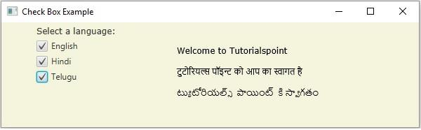 CheckBox checkBox3 = new CheckBox("Telugu");