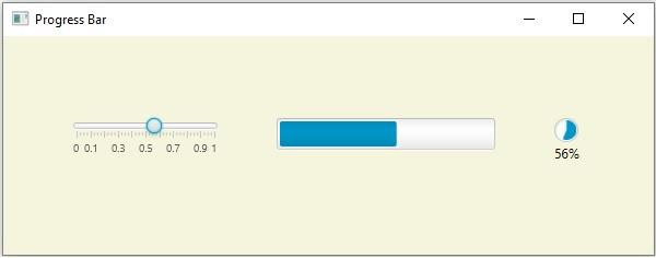 進度條 − 進度條是事件(一系列步驟)過程的指示器。你可以透過例項化 javafx.scene.control.ProgressBar 類來建立進度條。