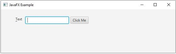 在以下 JavaFX 示例中,我們建立了一個標籤(文字)、一個文字欄位和一個按鈕。使用labelFor()方法,我們將標籤(文字)與文字欄位關聯起來,從而啟用助記符解析(T)。因此,在輸出視窗中,如果你按Alt + T,此文字欄位將獲得焦點。