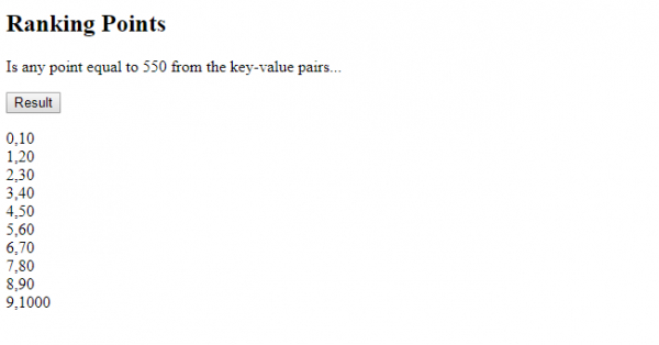 <p>Is any point equal to 550 from the key-value pairs...</p>