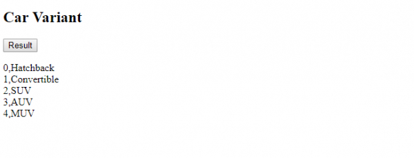 var car = ["Hatchback", "Convertible", "SUV", "AUV", "MUV"];