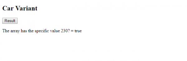 document.getElementById("test").innerHTML = "The array has the specific value 230? = "+n;