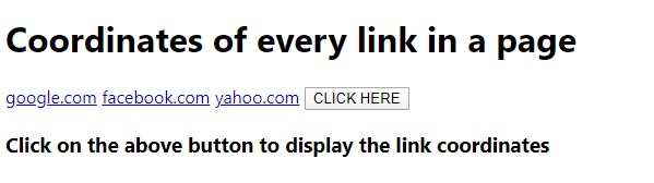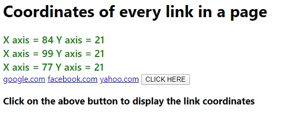 以下程式碼可用於查詢頁面中每個連結的座標,它使用 JavaScript −