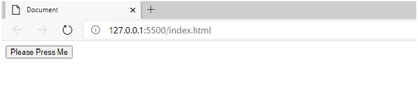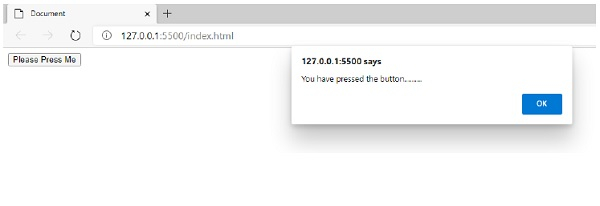 要針對按鈕點選觸發警報,請使用 addEventListener()。假定下面是我們 HTML 網頁上的按鈕 −