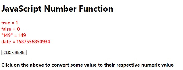 JavaScript Number() 函式將作為引數傳遞的物件值轉換為其相應的數值。