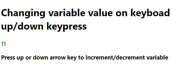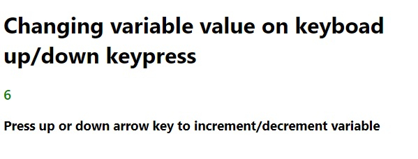 <h1>Changing variable value on keyboad up/down keypress</h1>
