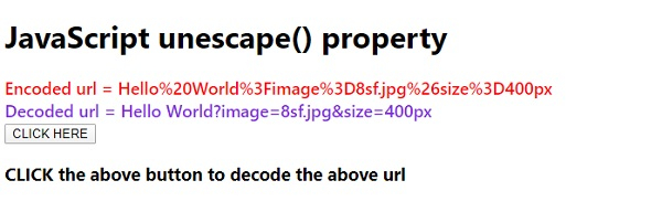 resultEle.innerHTML = "Decoded url = " + unescape(url);