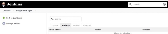 我們將導航到外掛管理器頁面,在這裡我們將獲得可用Jenkins外掛的列表。
