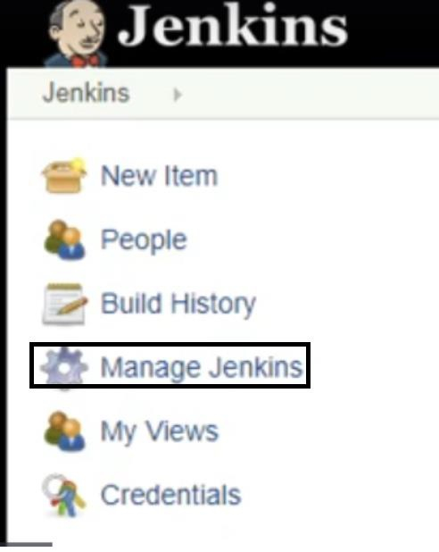 要新增Jenkins外掛,請單擊Jenkins應用程式側邊欄中提供的“管理Jenkins”連結。