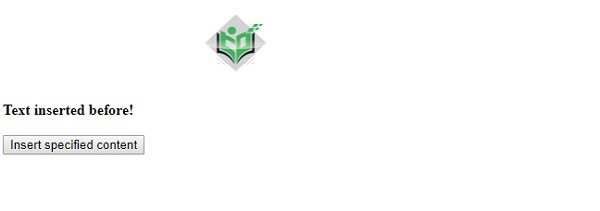 現在讓我們看一個示例來實現 jQuery 中的 before() 方法 −