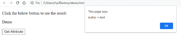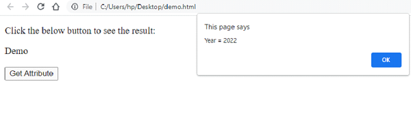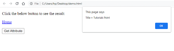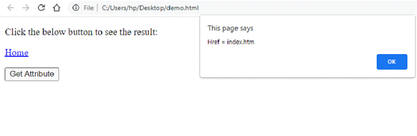 點選“獲取屬性”按鈕。將顯示一個警告框,顯示 href: