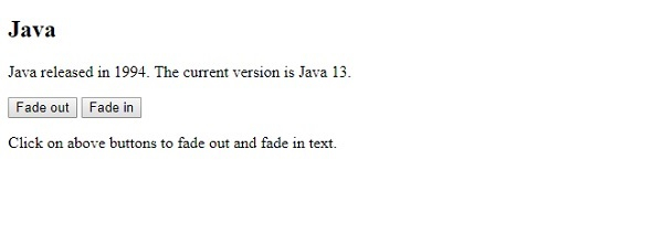 <p>Click on above buttons to fade out and fade in text.</p>