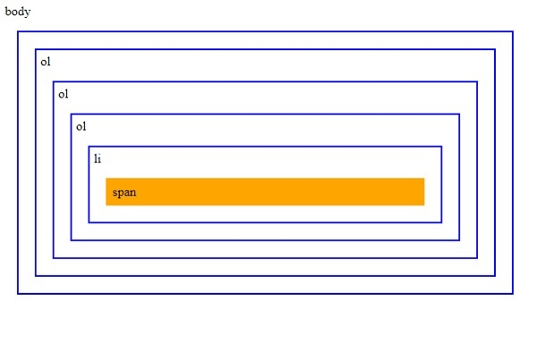 $("ol").find("span").css({"background-color": "orange", "color": "black","border": "3px dashed orange"});