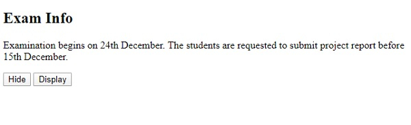 現在讓我們來看一個實現 jQuery hide() 方法**的示例 −