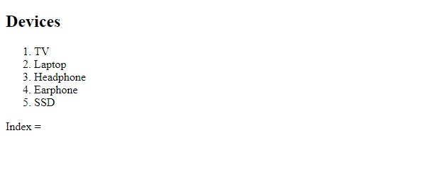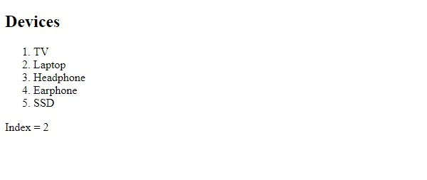 現在,要獲得任一列表項的索引,只需單擊它,如下所示。我們在這裡單擊“耳機” −