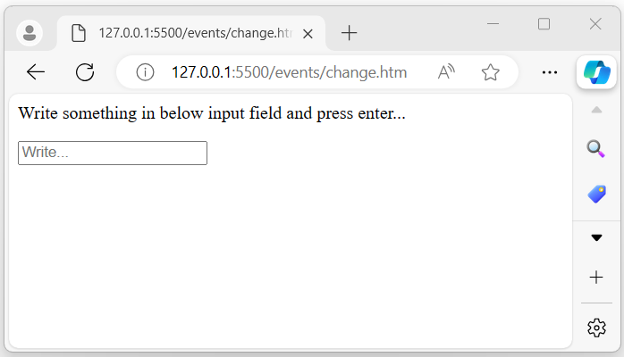 執行上述程式後,它將顯示一個輸入欄位。當用戶在此欄位中輸入文字,然後按回車鍵或單擊欄位外部時,瀏覽器螢幕上將出現一個警報彈出訊息: