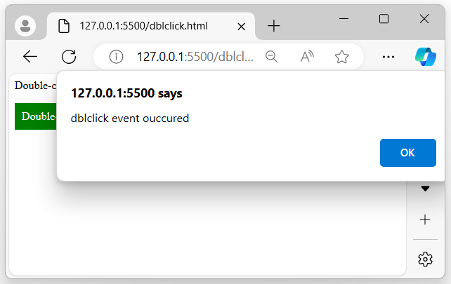 上述程式顯示一條訊息,一旦我們雙擊該訊息,瀏覽器螢幕上將出現一個警報彈出訊息: