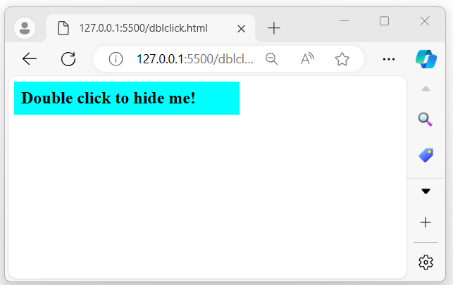 使用 jQuery dblclick()事件方法,我們嘗試觸發一個操作,以便在使用者雙擊顯示的訊息時隱藏指定的元素: