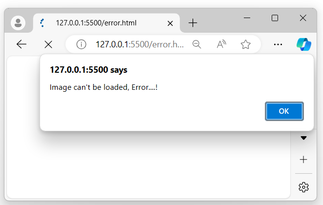 如果影像原始檔丟失或影像載入失敗,瀏覽器螢幕上將顯示一個彈出警報: